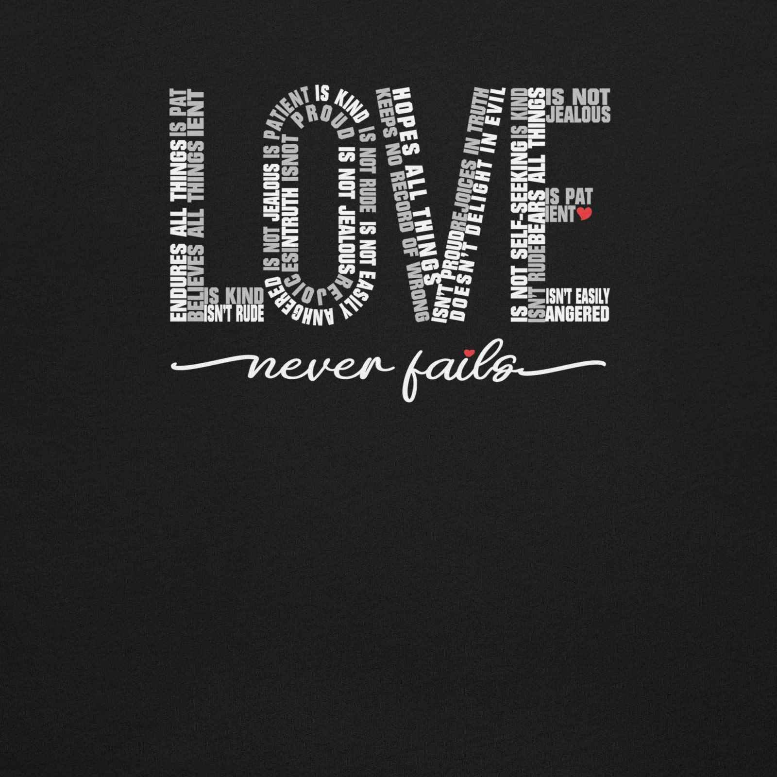 Love Never Fails Christian T-Shirt design